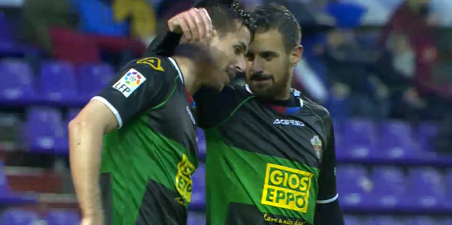 La línea de rechace blanquivioleta no tapó y el exjugador del Espanyol tuvo tiempo para controlar y colocar el balón donde quiso. El resto de los primeros 45 minutos fueron un quiero y no puedo vallisoletano que se estrellaba una y otra vez en la defensa ilicitana, que paraba bien a los atacantes locales, Manucho no conseguía bajar balones y el centro del campo de Escribá (Márquez y Rubén Pérez) ganaba la partida al trivote blanquivioleta.